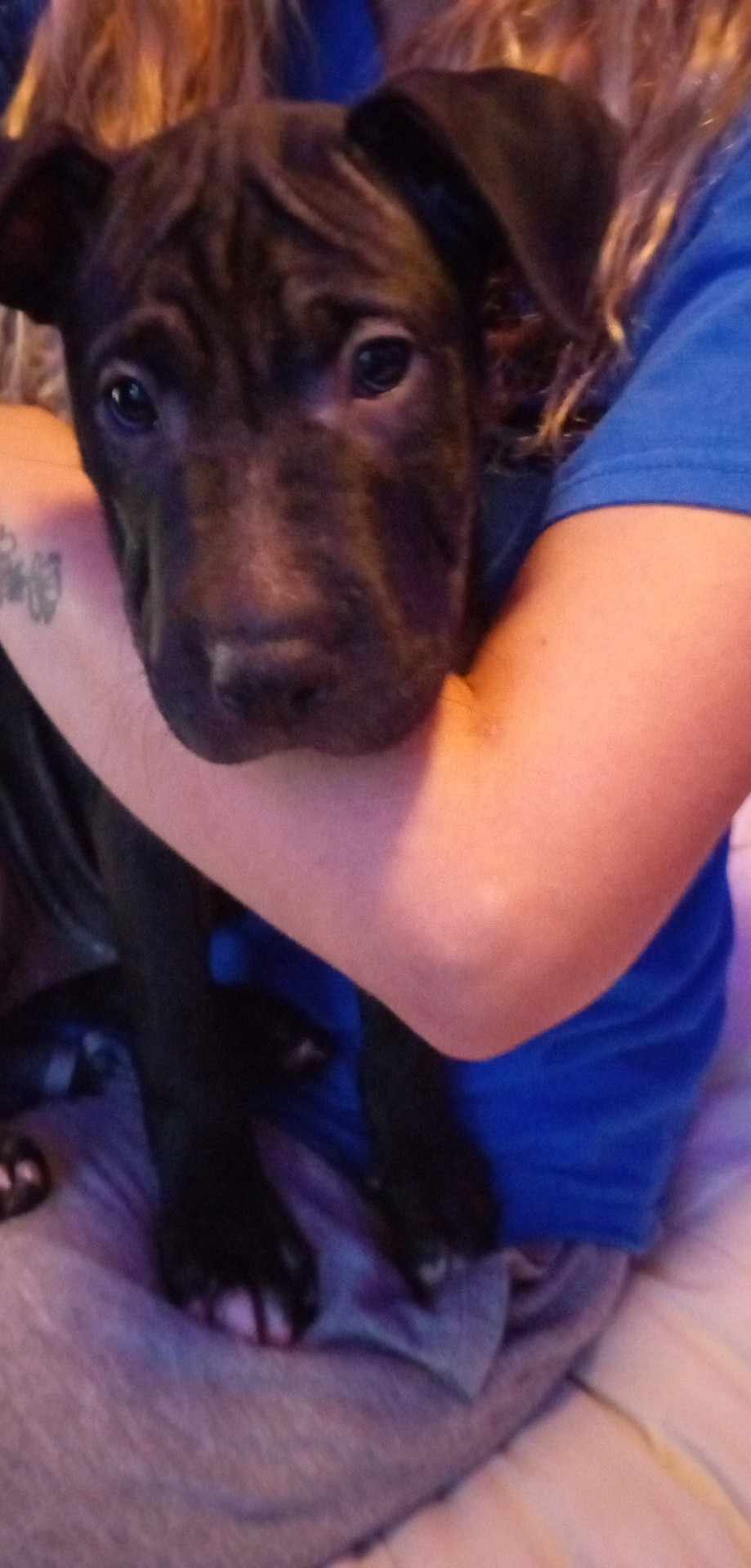 Pet Description:Onyx was born July 17 2023. She is a bull mastiff mix. She is mostly all black with white on her chest area and some white on her toes. she likes to be called |