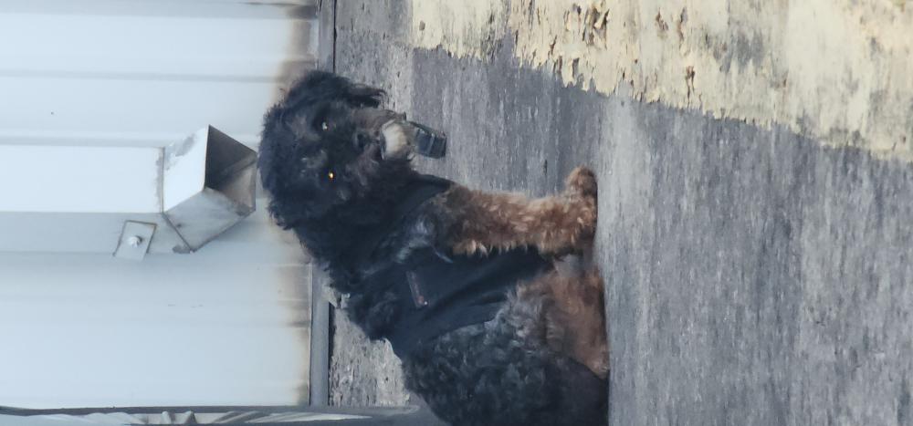 Pet Description:Small dog scared can not get closer than 10 feet. Has on a harness. |
