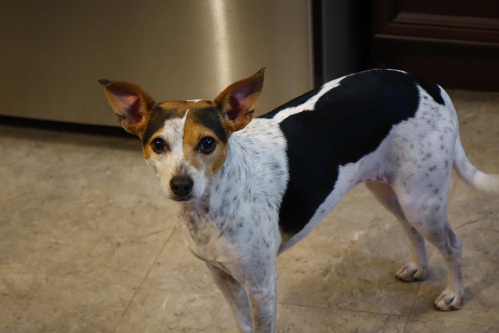 Pet Description:Jack Russell mix. White with black patches. Face is white brown and black with pointy ears. She is skittish. Do not chase or approach. Please contact us. |