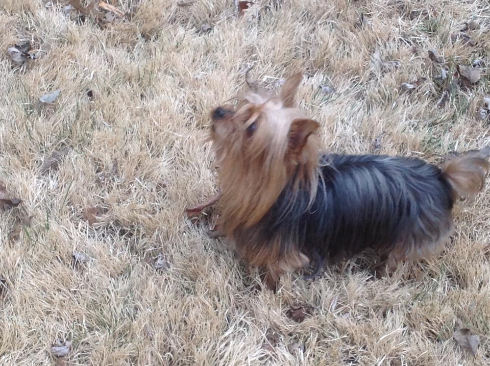 Pet Description:Tan/Silver/Black small Yorkie with silky hair. About 4 lbs. Female, 12 yrs old. She holds her back leg up most of the time. Cataracts in her eyes. She has allergies and is chipped 840866602. She went missing from my front yard. She did not have her collar on because we were preparing for a bath. |