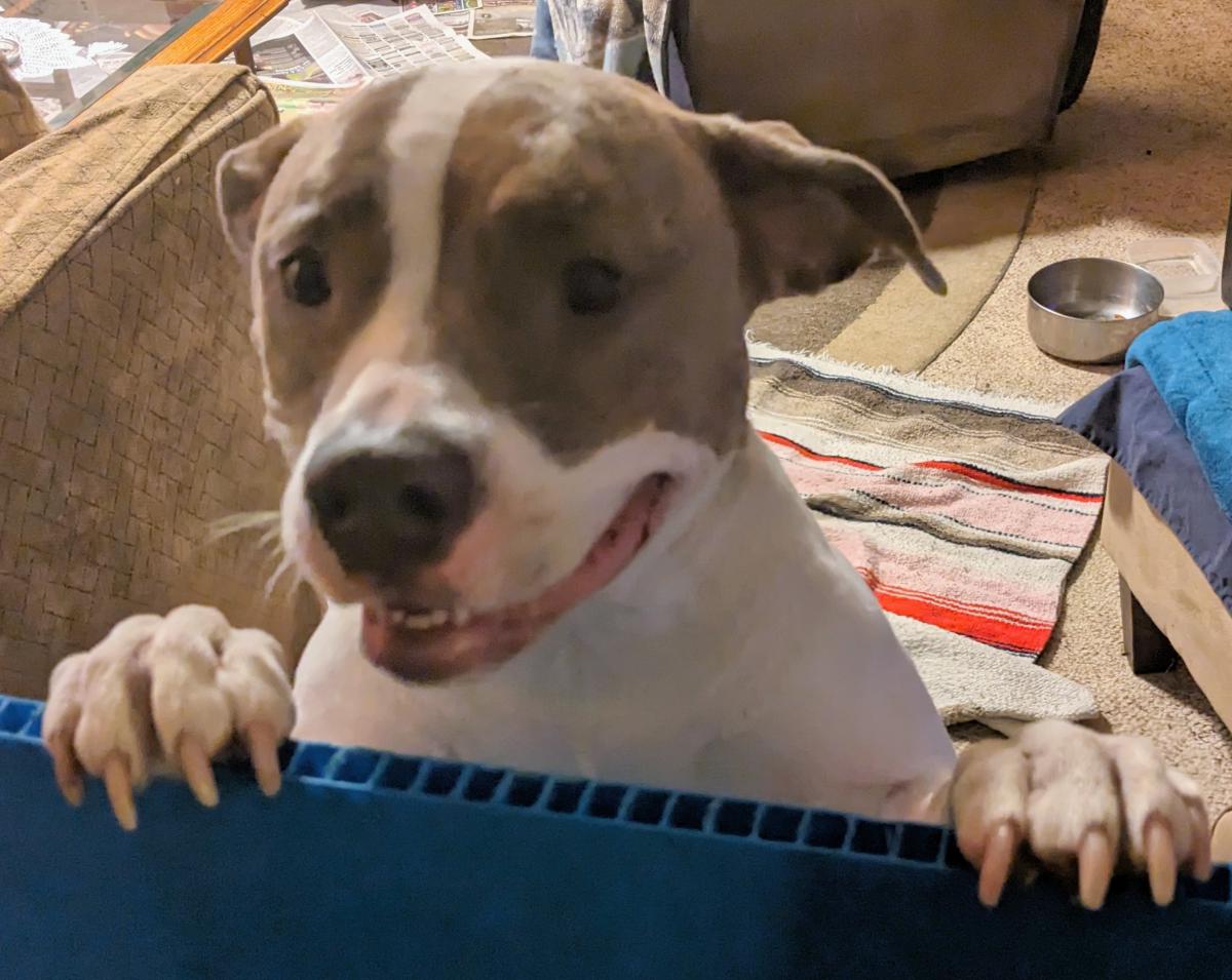 Pet Description:Has no collar, no tags. Looks like a pit very well mannered. Brown and white was in the middle of the street, misses her home |