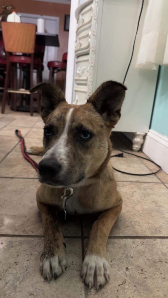Pet Description:Bella is a brown dog with light blue eyes and black spots. She was not wearing a collar when she got lost, she is a very playful dog. |