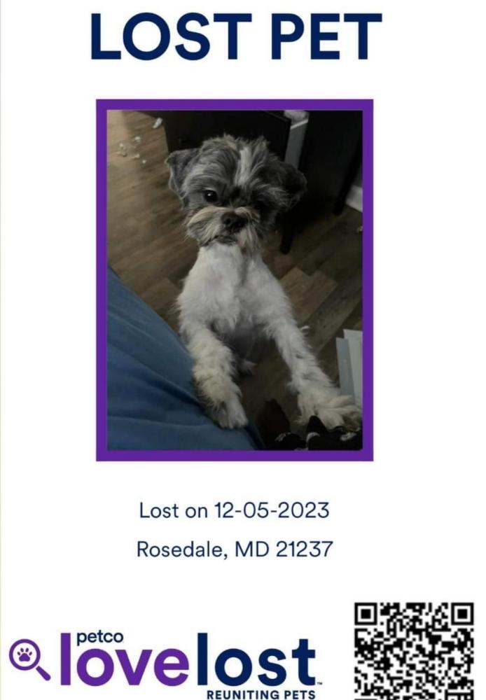 Pet Description:Milo is a full breed shih Zu (Head grey, body white with brindle pattern on on upper back and bottom of tail/bushy all white top of tail) he's very friendly but has to open up to you. |