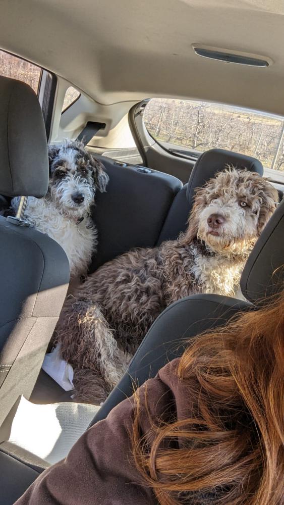 Pet Description:2 poodle mixes found in highland NY today. Both dogs have collars that are too tight and matte hair. Neighbors report dogs seen on ring cameras for the last month but do not recognize them. |
