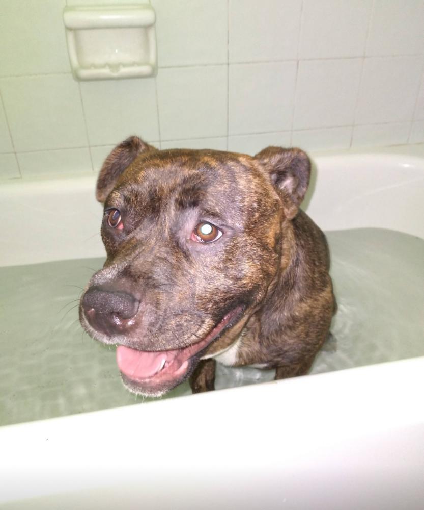 Pet Description:Satine is a 80 lb brindle she’s pit bull box lab mix very scared |