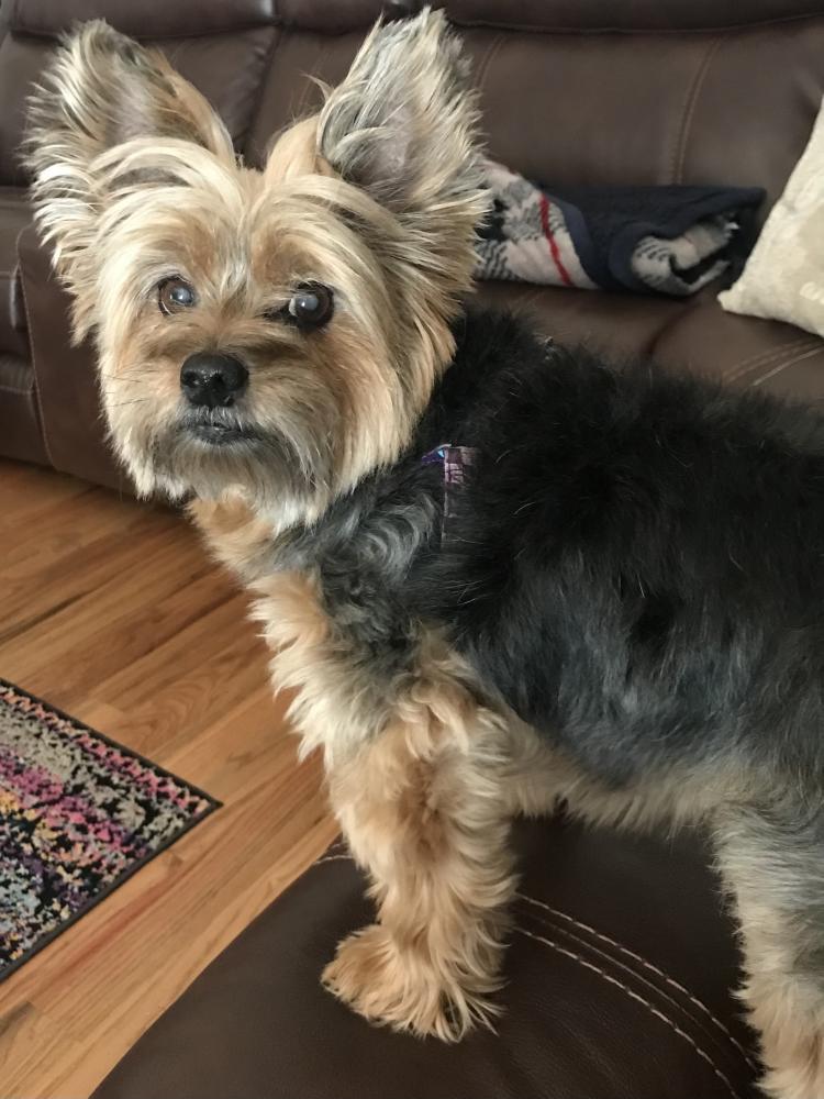 Pet Description:Bailey is 15 years old and cannot hear and has limited eyesight. Her hair is cut short. Her face is tan and grey and her body is black. |