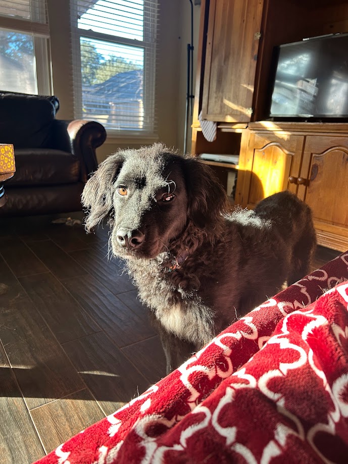 Pet Description:He is a cocker spaniel flat coated retriever mix, 1 year 2 months old, has a white spot on his chest, but is mostly black, medium sized. He is very shy. He slipped out of his collar, and he is microchipped. |