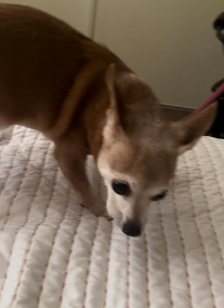 Pet Description:She just under 10lbs. Light brown, no teeth, no collar. 15 years but she can see and hear just fine. She is chipped. She’s very timid and easily startled. Allergic to chicken. |