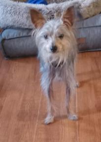 Pet Description:full grown male miniature long haired terrier 12 inches tall |
