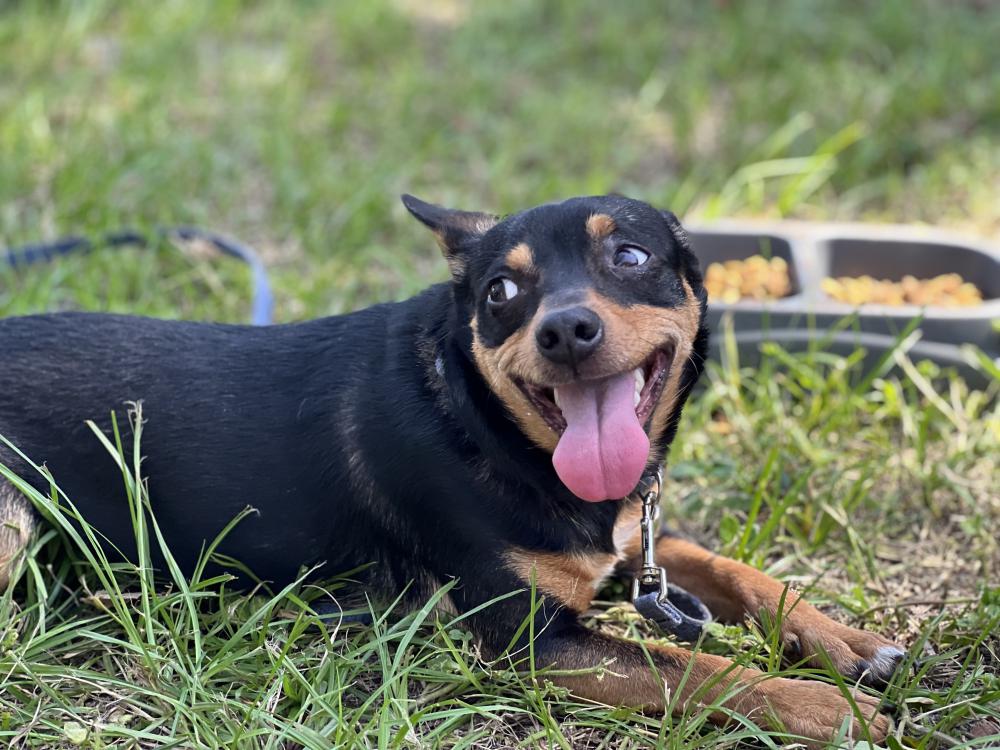 Pet Description:Roughly 12 lbs, Black/Tan with White on Chest |