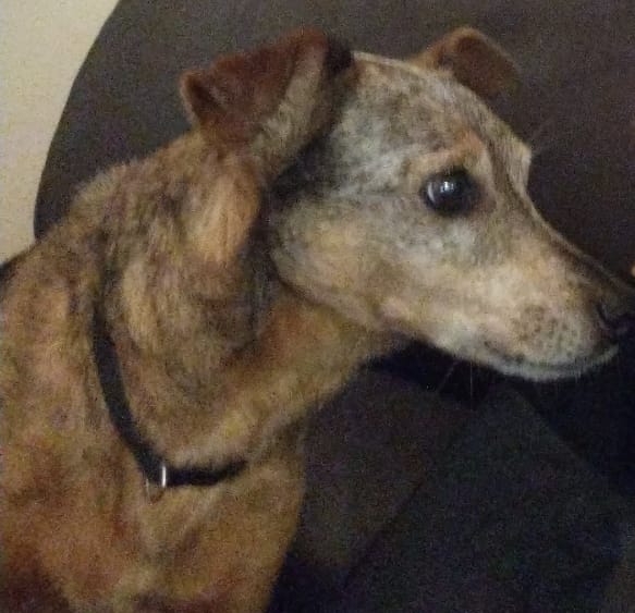 Pet Description:Small dog with brindle markings. Very sweet. She's older so she can't hear or see very well. |