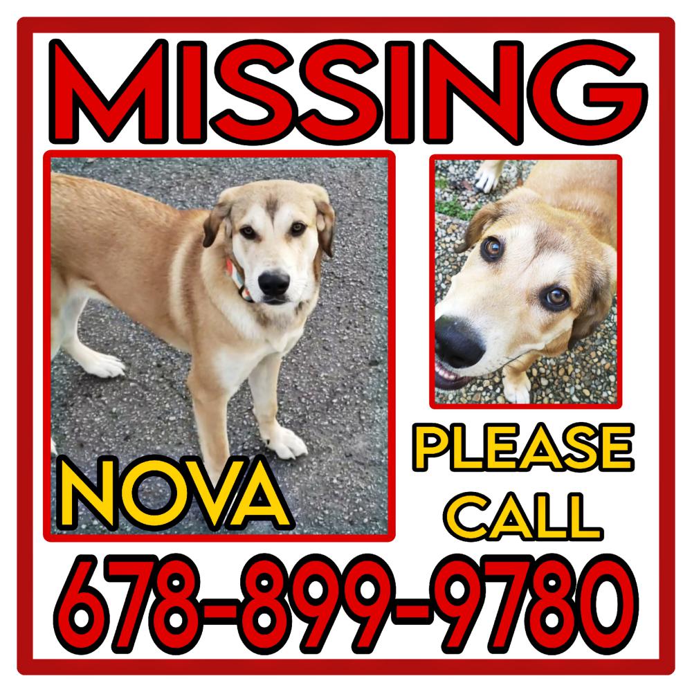 Pet Description:Looking for a golden blond dog around the meadow lakes/lake creek/rome hwy area Cedartown GA. Nova is half Great Pyrenees and Bloodhound. She has a polka dot collar with orange on it. Help us bring our girl home. Please call 678-899-9780. |
