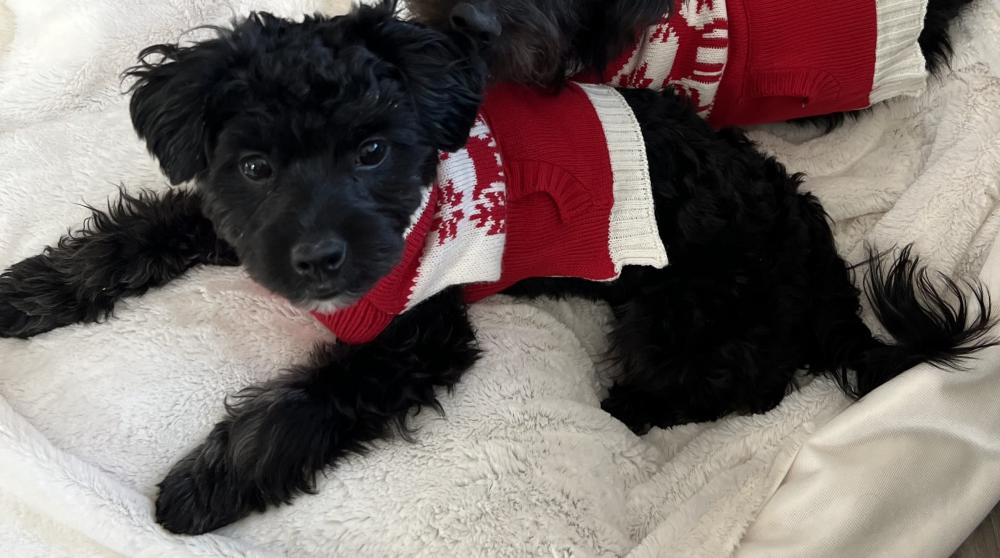 Pet Description:Yorkipoo black with a small white tip on his tail. Blue collar with a tag. Weight around 7-8 lbs. |
