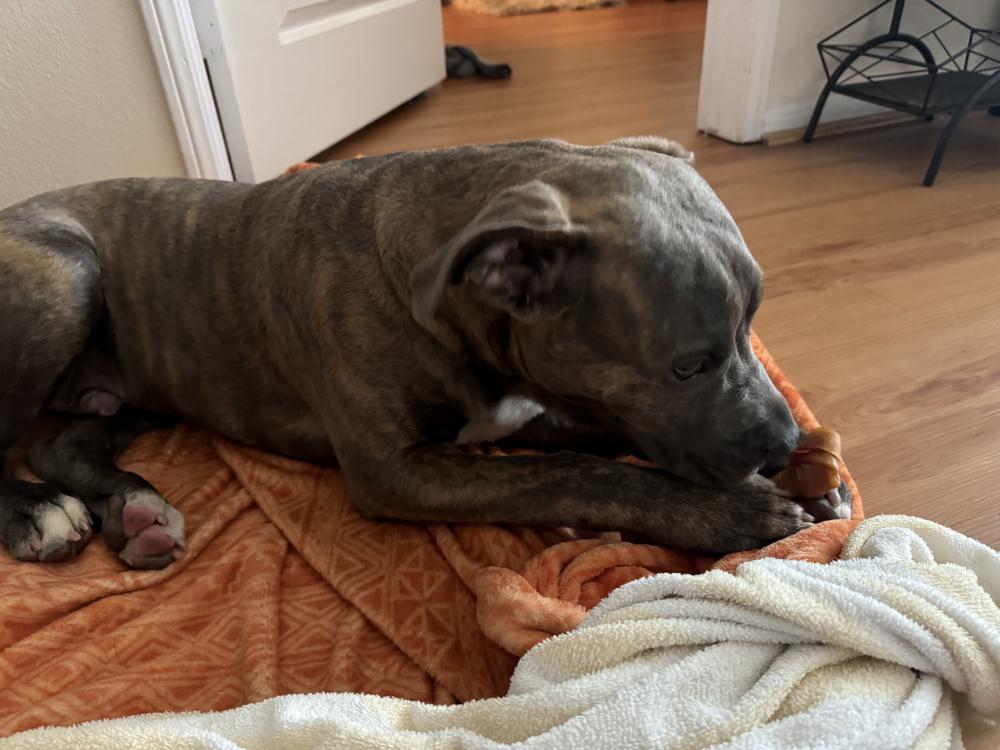 Pet Description:Male puppy pitbull very sweet blue brindle ( no collar ) puppy but large |
