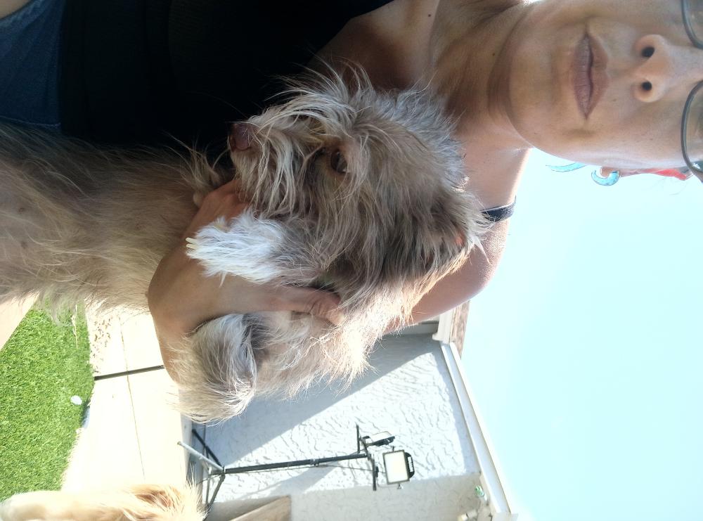 Pet Description:She has brown hair, white socks, chest, and the tip of her tail, and around her red nose. Her coat is mixed with brown and white |