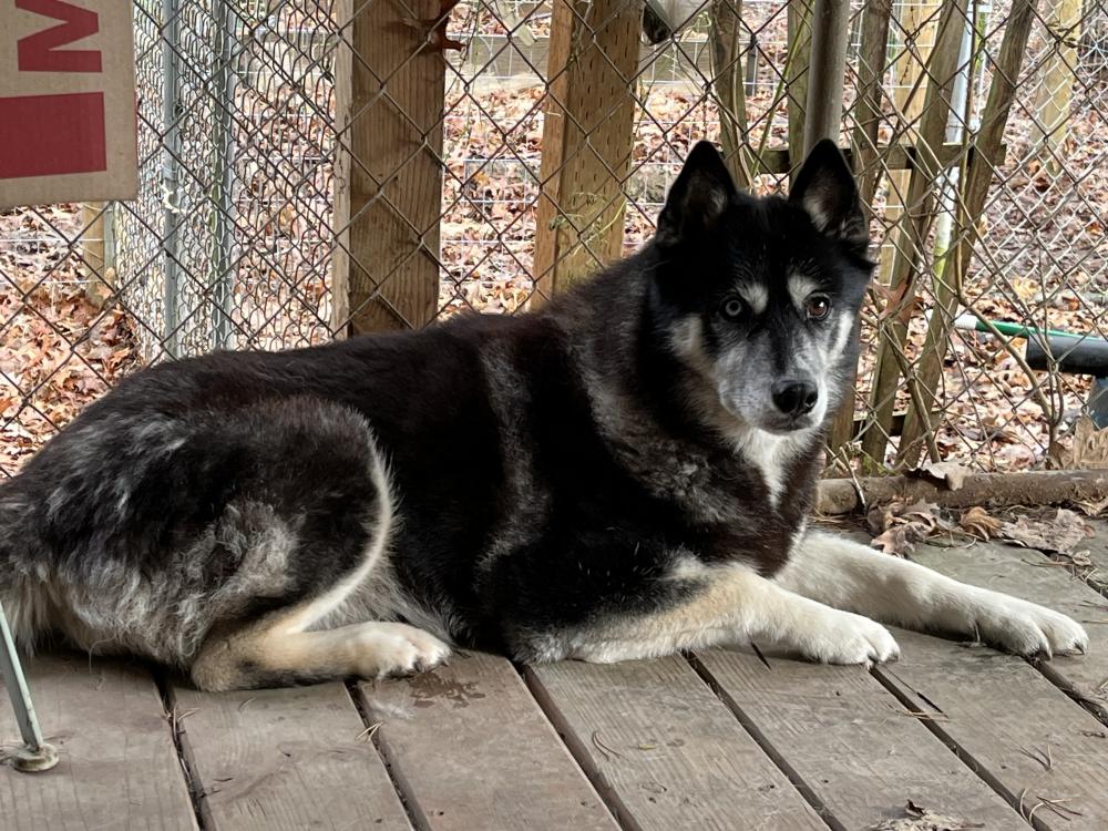 Pet Description:Comanche has one blue eye, one brown eye. She is mostly black but has light eyebrow markings, a cream light gray marking around her muzzle, cream tan legs and a cream gray under coat. She is friendly and may try to “talk” to you which sounds like a howl/growl but that’s how she greets and talks, it’s not mean or aggressive- just her talking to you. |