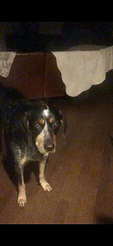 Pet Description:Gray and brown with a bluetick pattern, and a white stripe down his forehead between his eyes. has extreme allergies and needs his medication so he doesn’t chew himself raw. |