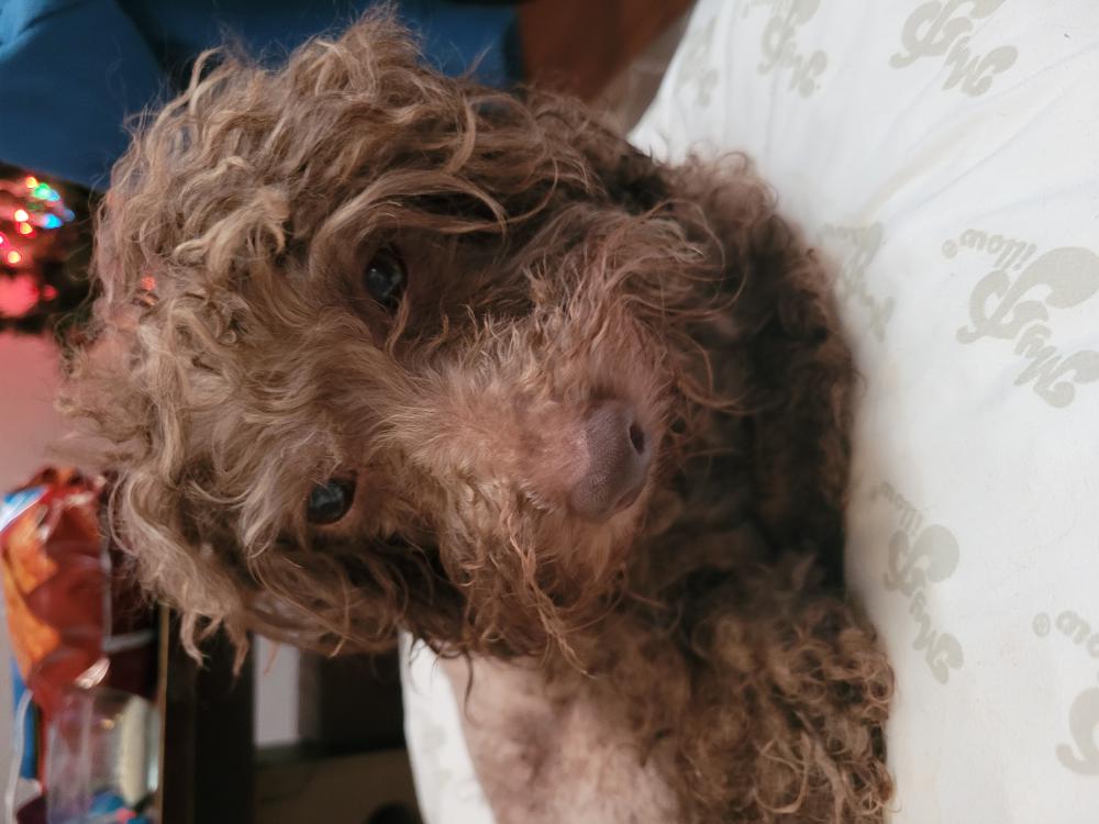Pet Description:Tiny Poodle Mix. She is light brown, very matted fur, and has cataracts in both eyes. |