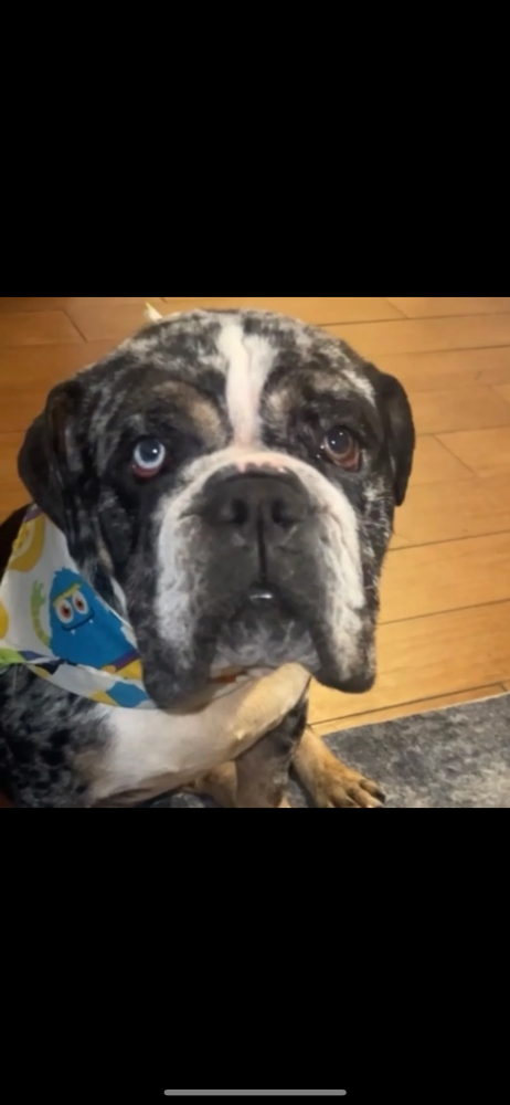 Pet Description:Blaze is very friendly, one eye is blue and the other brown. He is medium to large size with brown marked feet. |