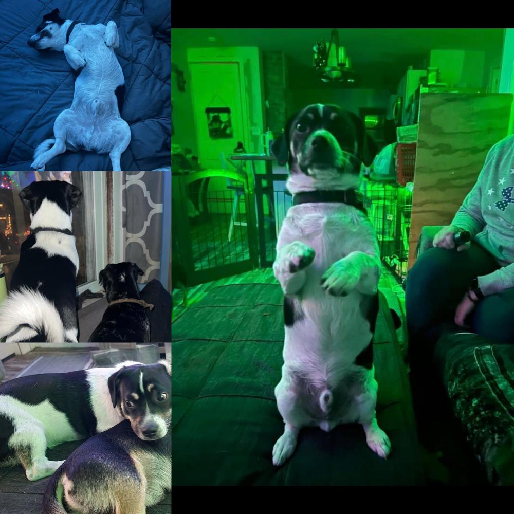 Pet Description:jack russel cavalier mix male neutered white with black spots floppy ears black collar |