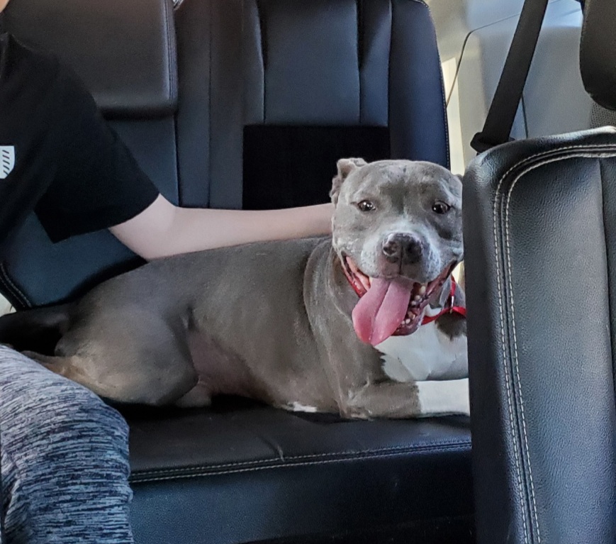 Pet Description:Small grey silver pitbul maybe 40 lbs very sweet and friendly. No collar. |
