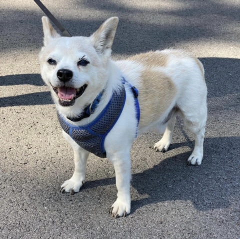 Pet Description:17-year-old chihuahua/terrier mix, white with light brown splotches, 15 pounds, mostly deaf and very anxious |