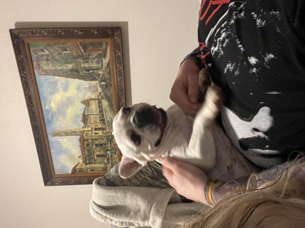 Pet Description:Small french bulldog. Shes white with a little light brown spots |