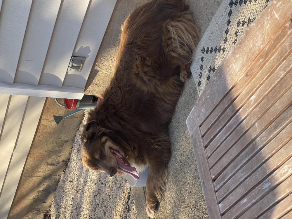 Pet Description:About 100-120lbs- very friendly, has a purple collar |