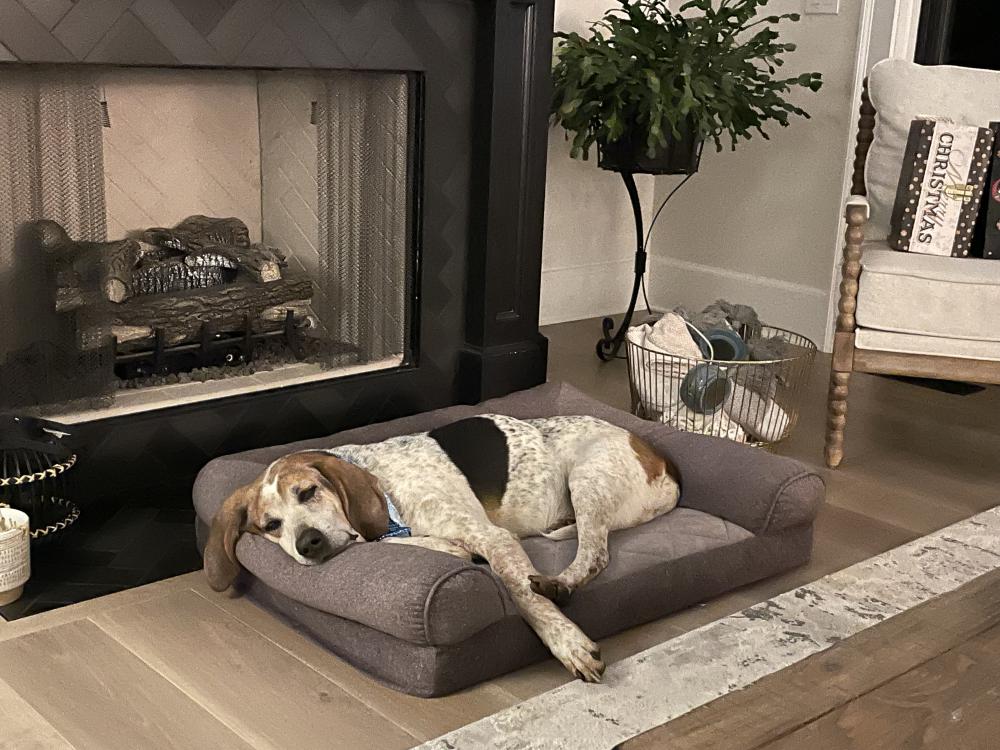Pet Description:Black tan and white male hound. Older dog very friendly |