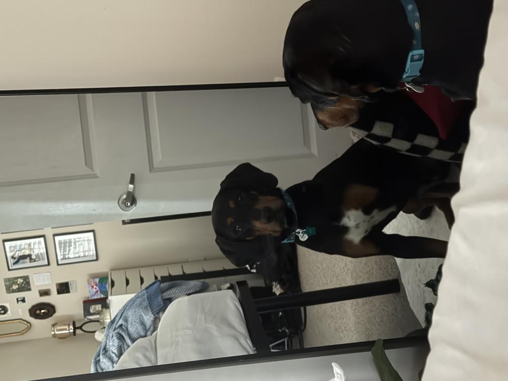 Pet Description:Black and brown hound dog. He was wearing a teal collar. |