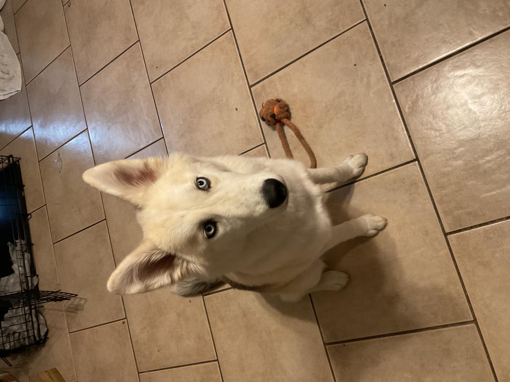 Pet Description:Skye is a 1 year old Husky mixed with German Shepherd, she has white and black fur but mostly white. |