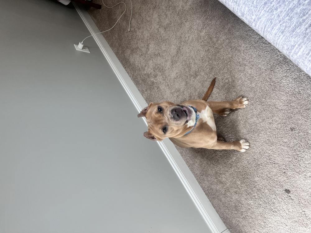 Pet Description:Medium, female pittie, no collar, no microchip, short, cropped ears |
