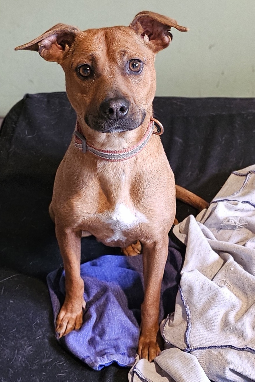 Pet Description:She is an unspayed female around 20lbs and 1.5yrs old. Very sweet. Has a pink reflective color on her. |