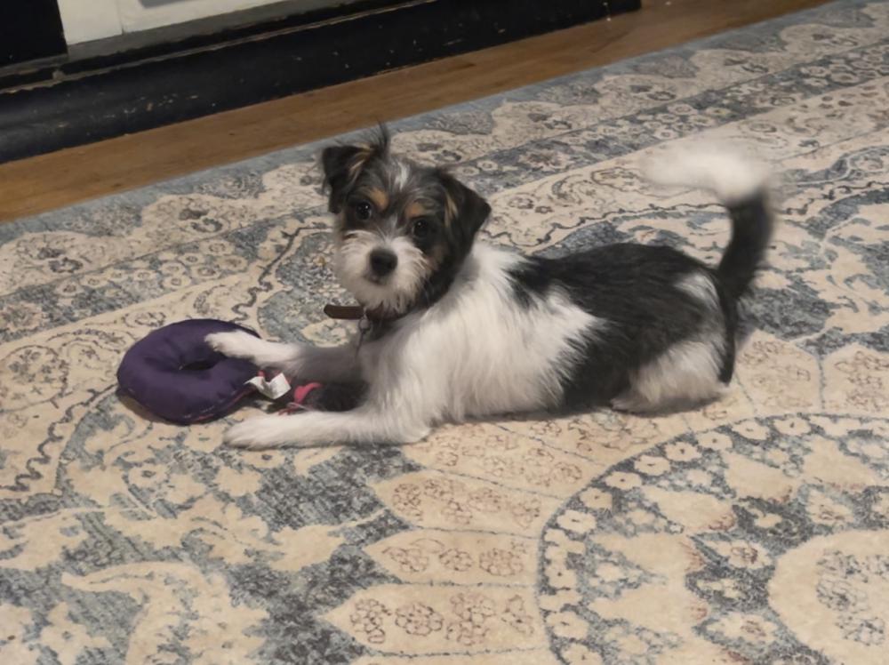 Pet Description:Tri-color, black, white and brown chihuahua/shih-tzu mix. Has white tipped tail. Very friendly but won’t come to strange people. |