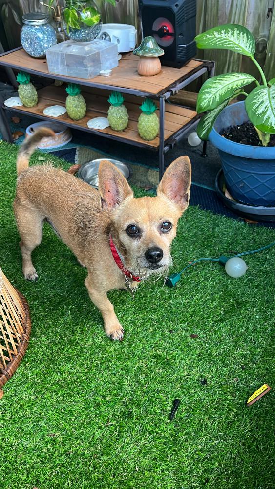 Pet Description:BMO is a Chihuahua mix with a red collar.He barks at strangers but if you approach slowly he will come to you. |