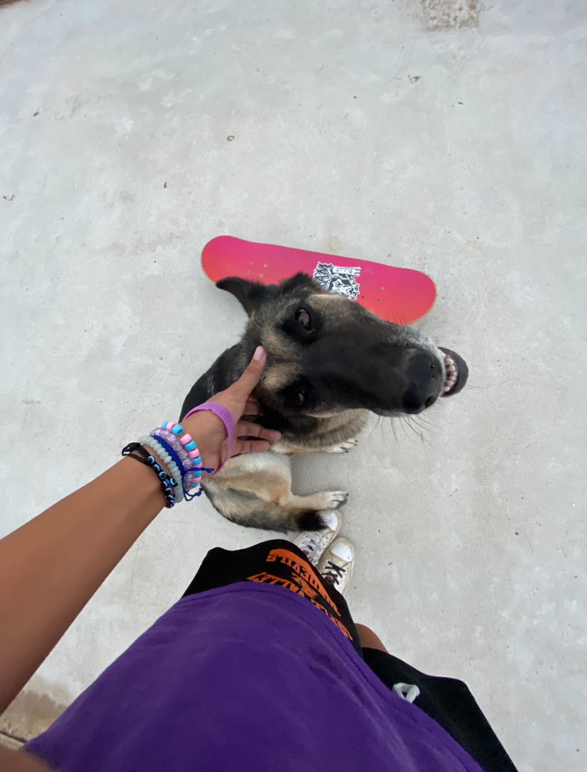 Pet Description:She is getting a snowy snout and has black on her back and was last seen with a pink collar but might have fallen off. Her tan parts are going down to her paws chest and tummy. |