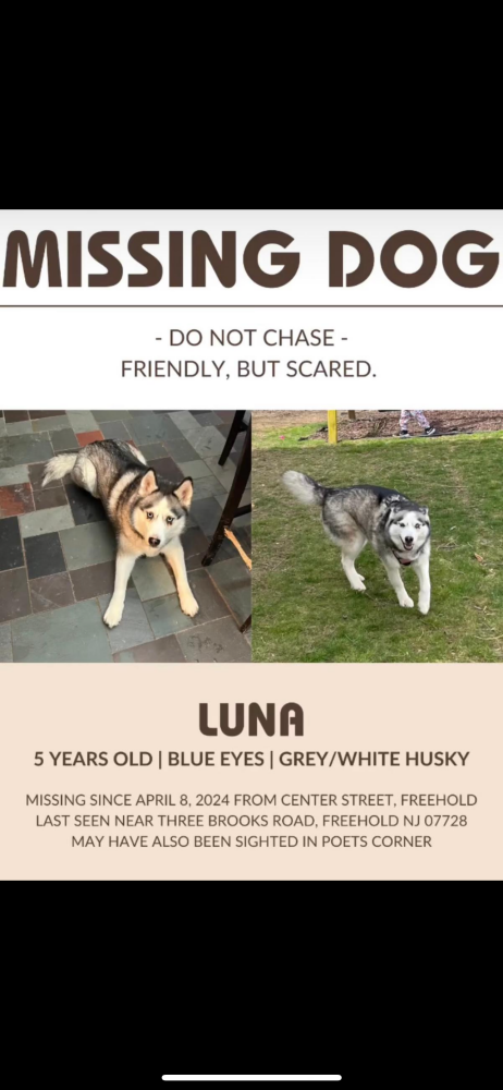 Pet Description:5 YEARS OLD | BLUE EYES | GREY/WHITE HUSKY, |