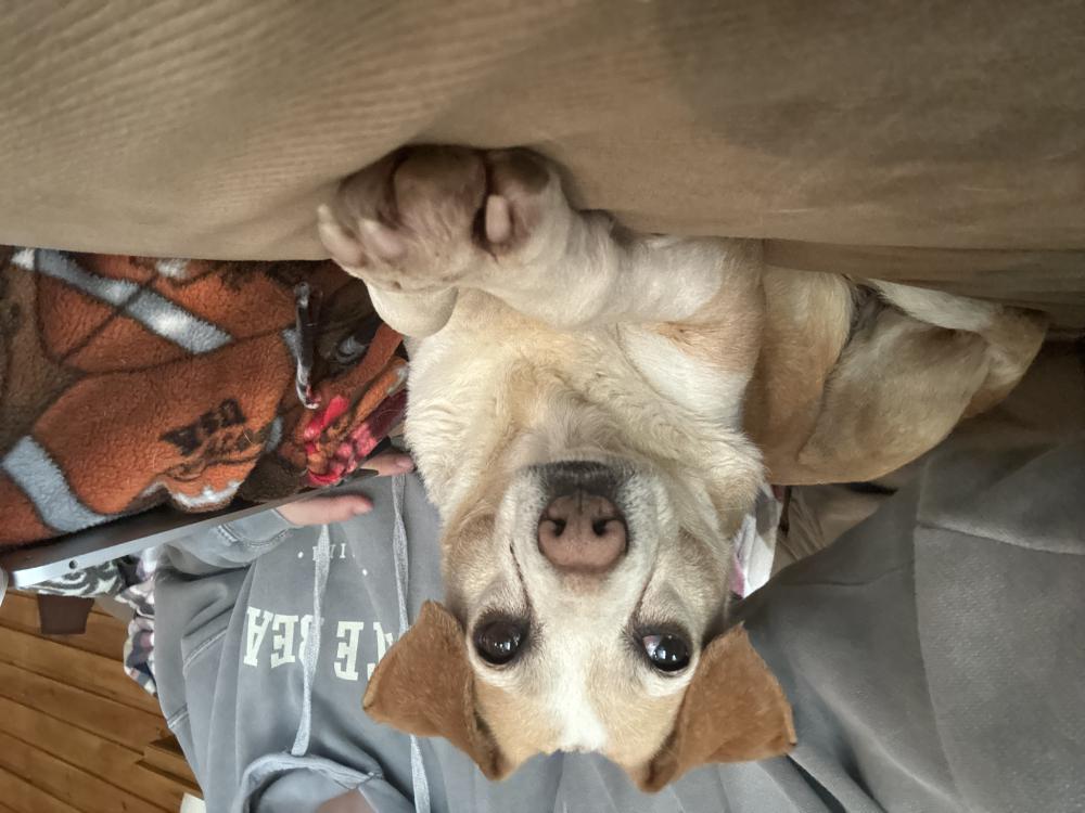 Pet Description:Older Beagle mix. Very sweet, chuncky. Has a white face, trimmed nails, loaf of bread build |