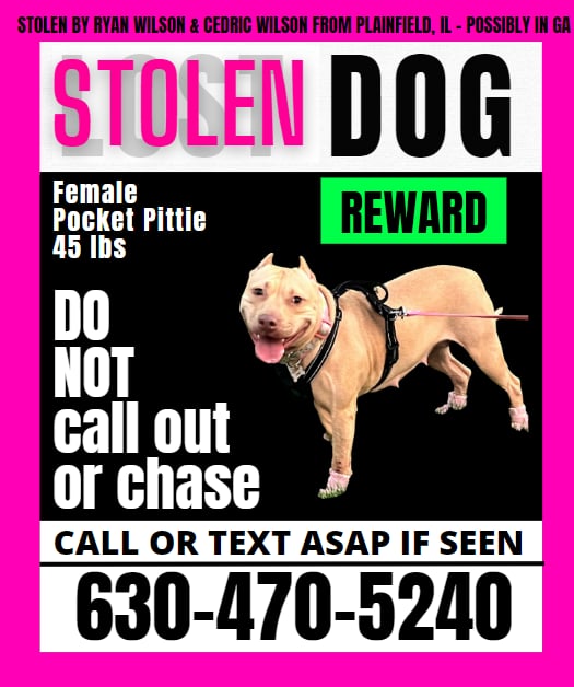 Pet Description:Pocket Pittie, 45 lbs, light brown / honey color - light white marking on chest, wound that was healing, possible scar front left leg. |