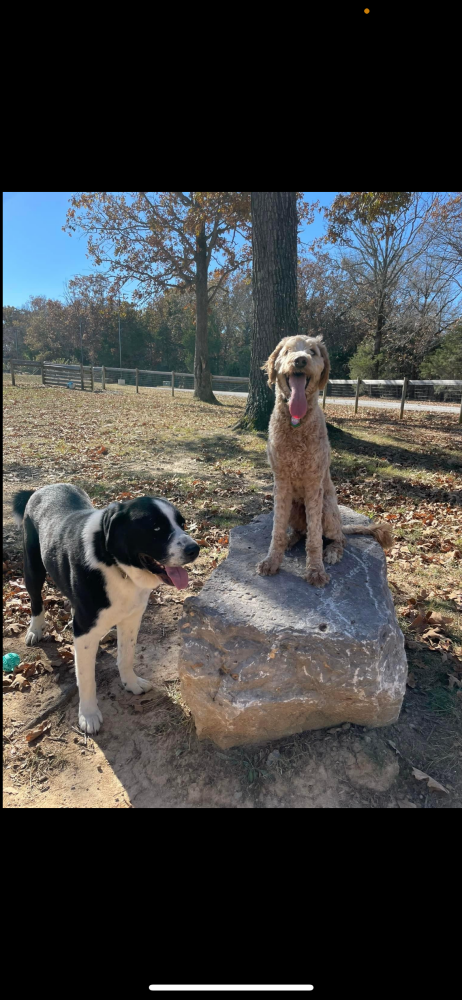 Pet Description:Duke is a Black and White 115lb Pyrenees mix. Molly is a tan Doodle about 40-50 lbs. Both have collars on with their name and my phone number. Molly has longer hair now |