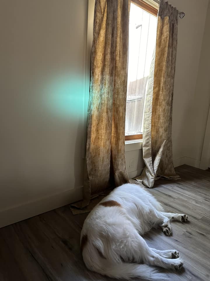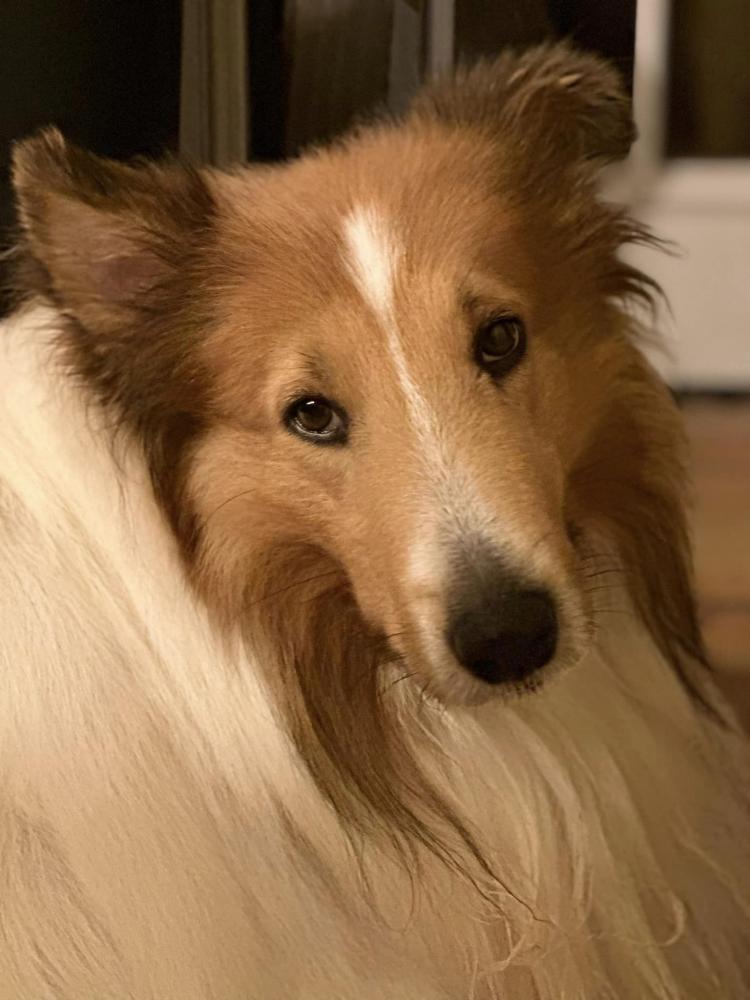Pet Description:Bear is 2.5 years old, unaltered, and is all white with long hair - two brown spots - one on his lower back, near his tail and the other on HIS left side. His face is sable brown (same as his spots) as well as his ears and beard. He has a white mark from his forehead wrapping around his black nose. He has big, brown beautiful eyes. |