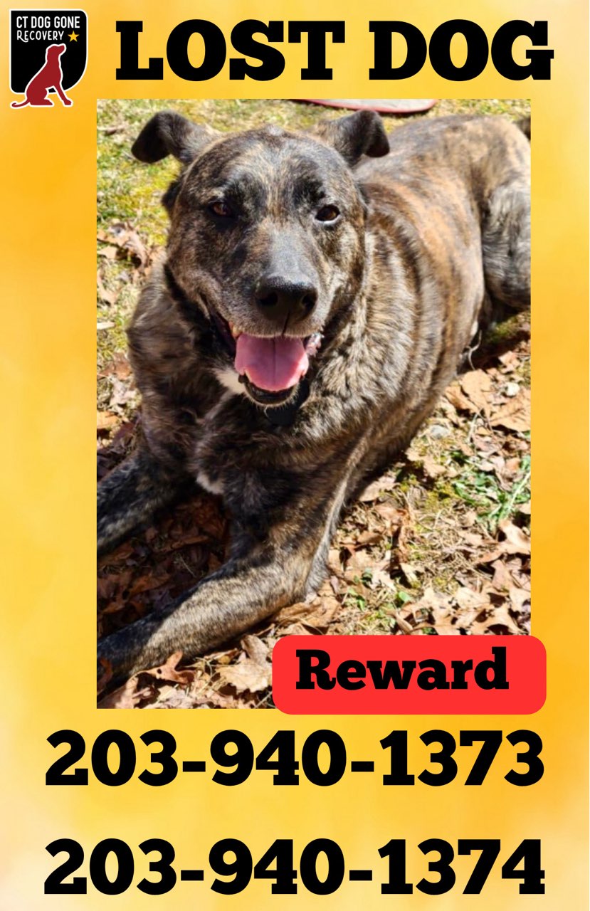 Pet Description:Knox is an 85 lb Brindle male mix. He was wearing a brown leather collar with a tag with his name on it. |