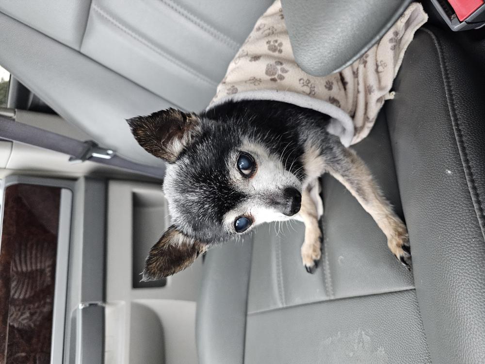 Pet Description:She is a small dog , has a hard time walking. She is 18 , black in color and gray muzzle. Friendly , vision impaired . |