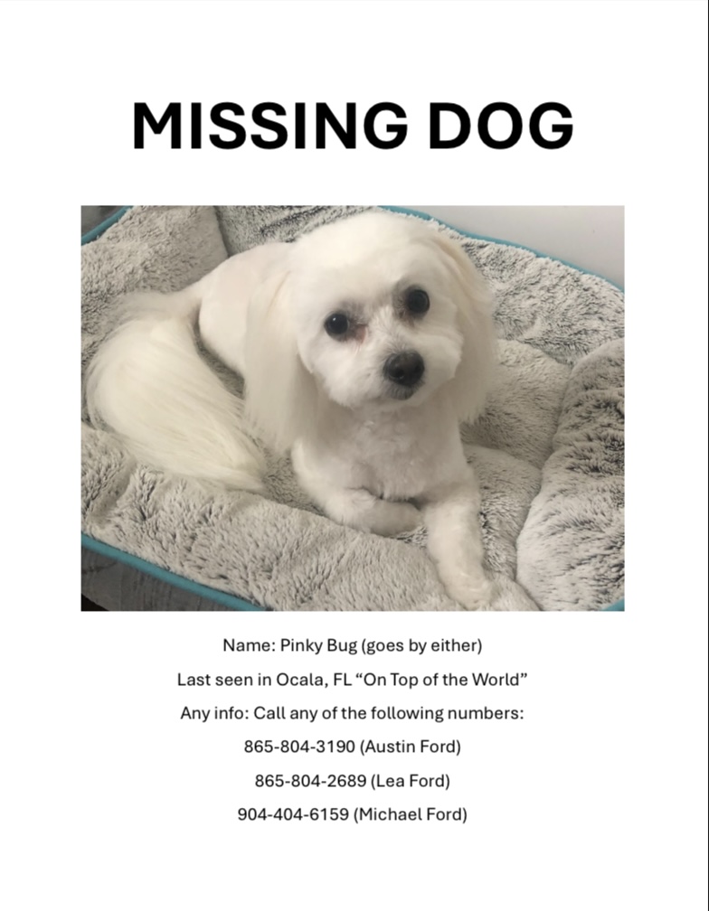 Pet Description:She’s 8 pounds, loud if people approach her, will react to squeaky toys or treats or name being called. |