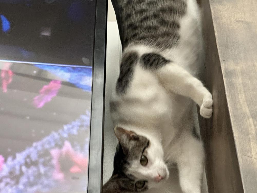 Pet Description:Marshmallow is an American shorthair tabby with a white chest and black and gray body. He is chipped but no collar. He is extremely friendly and will come and say hi. He knows his name. |