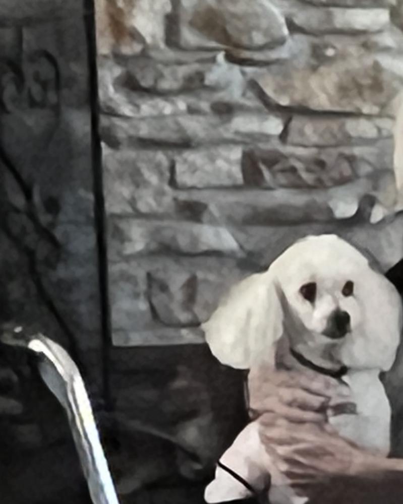 Pet Description:White toy poodle with Dallas Cowboy collar with ID tag |