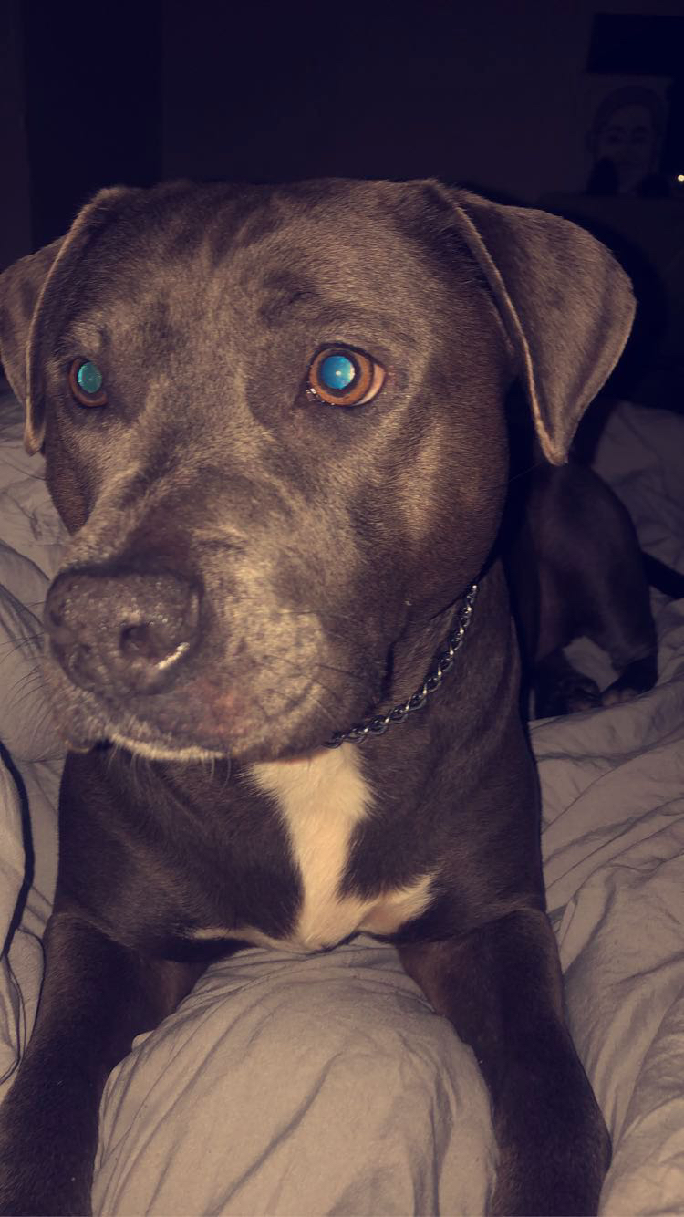 Pet Description:Blue nose Pit she’s medium sized white strip down her stomach. |
