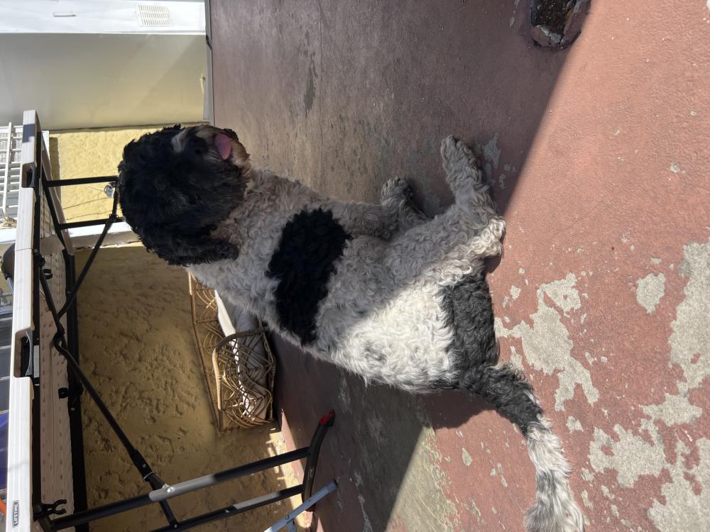 Pet Description:White with black spots, has no eyes & possibly deaf |