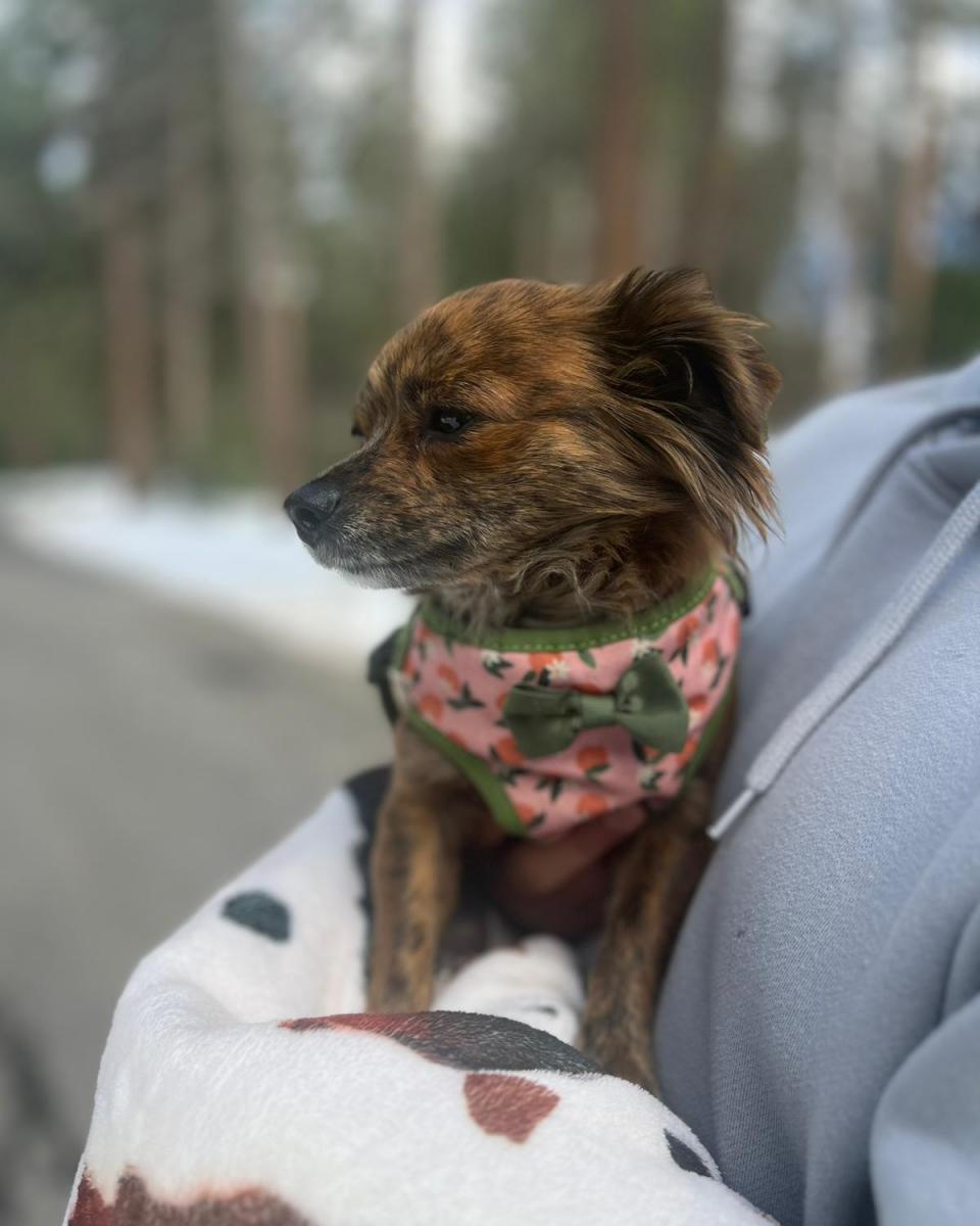 Pet Description:Perro chihuahua mixteado lleva un collar blanco antipulgas |