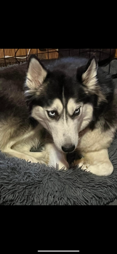 Pet Description:Black and White female husky around 35-40 lbs. Skinny due to having pups 12 weeks ago. |